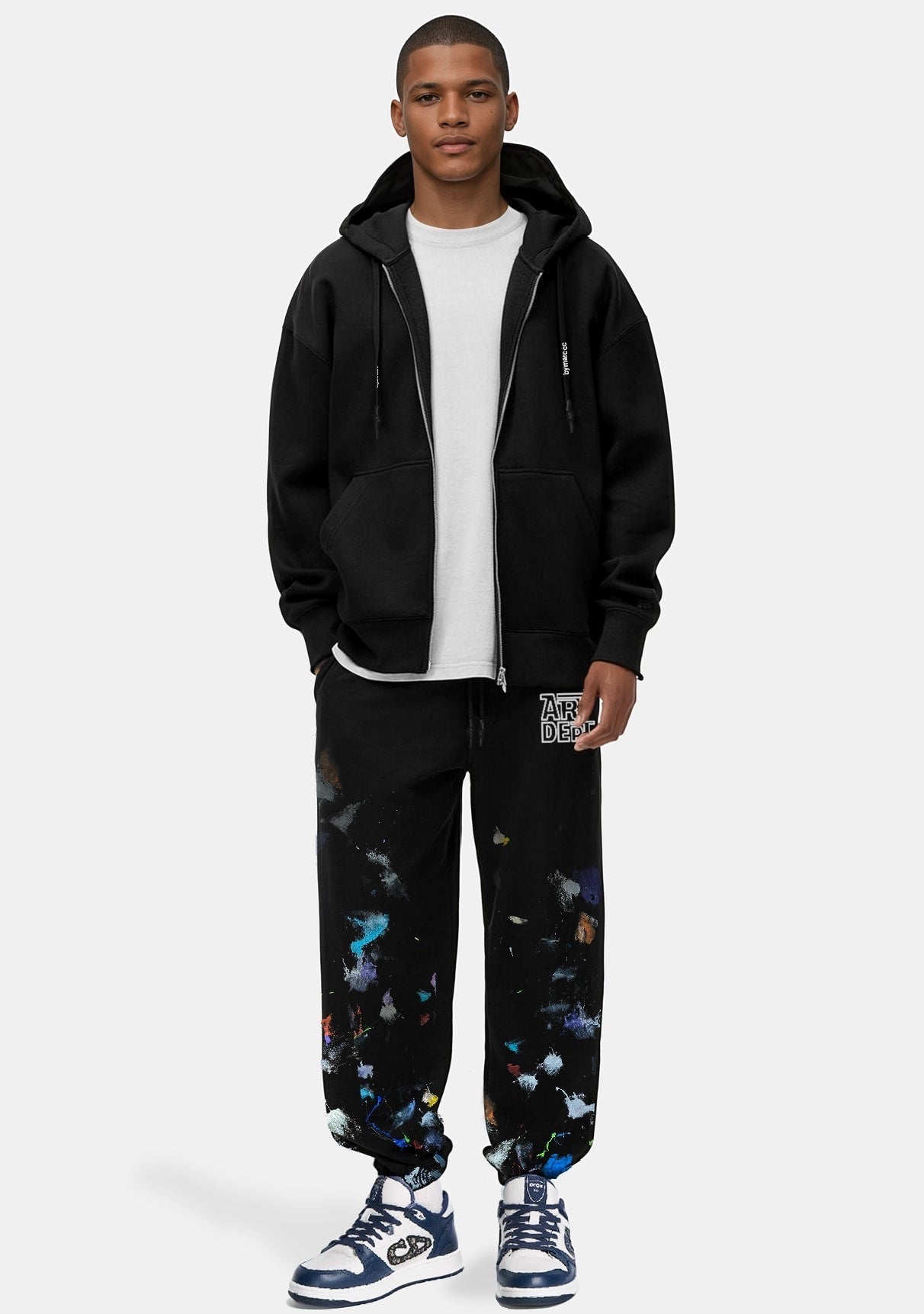 BLACK SWEATPANTS WITH ART DEPT PRINT AND HAND-PAINTED SPLATTER