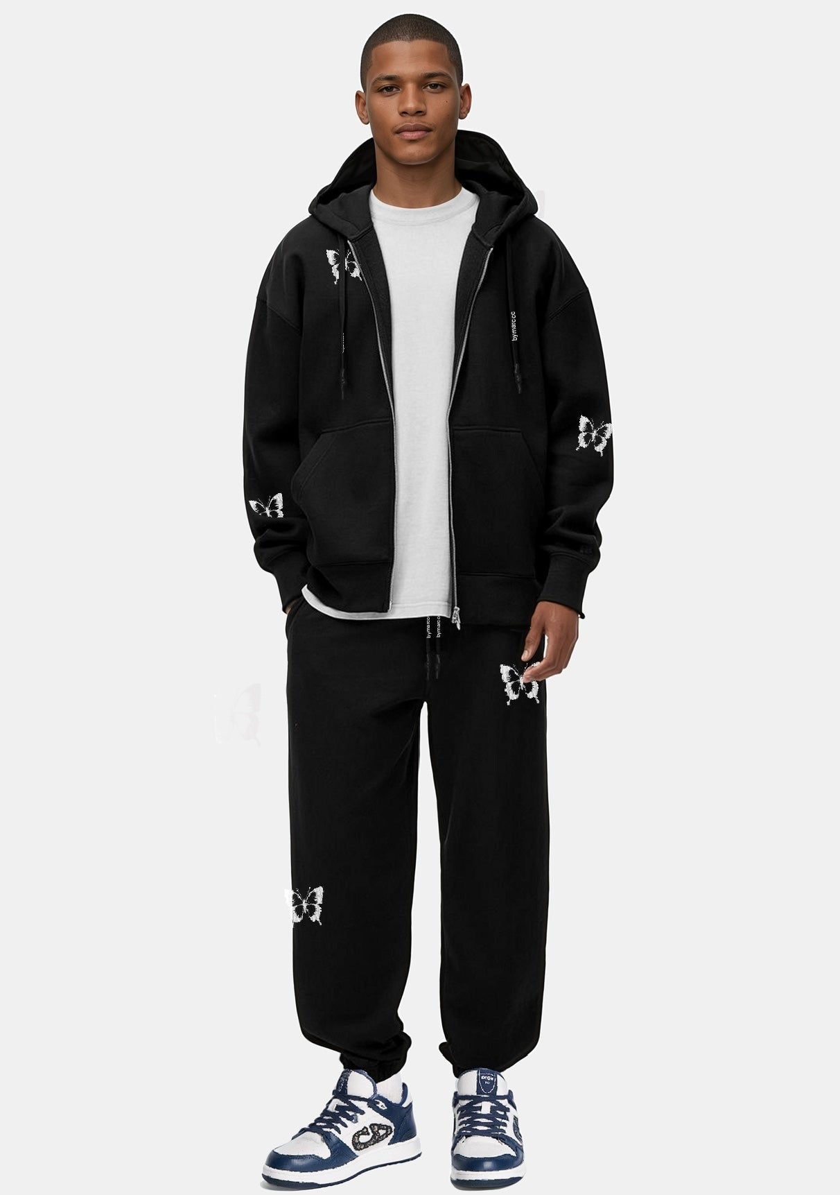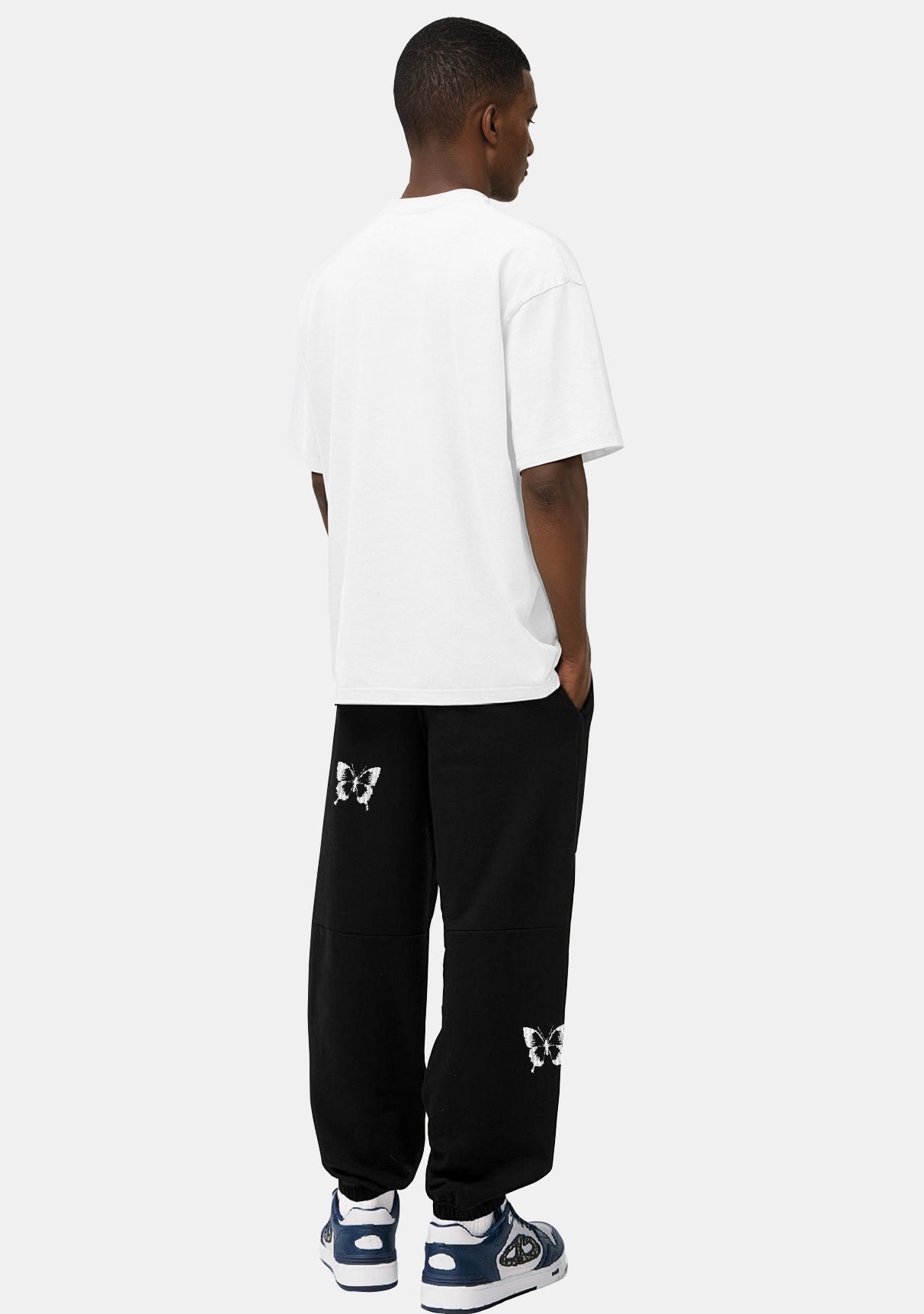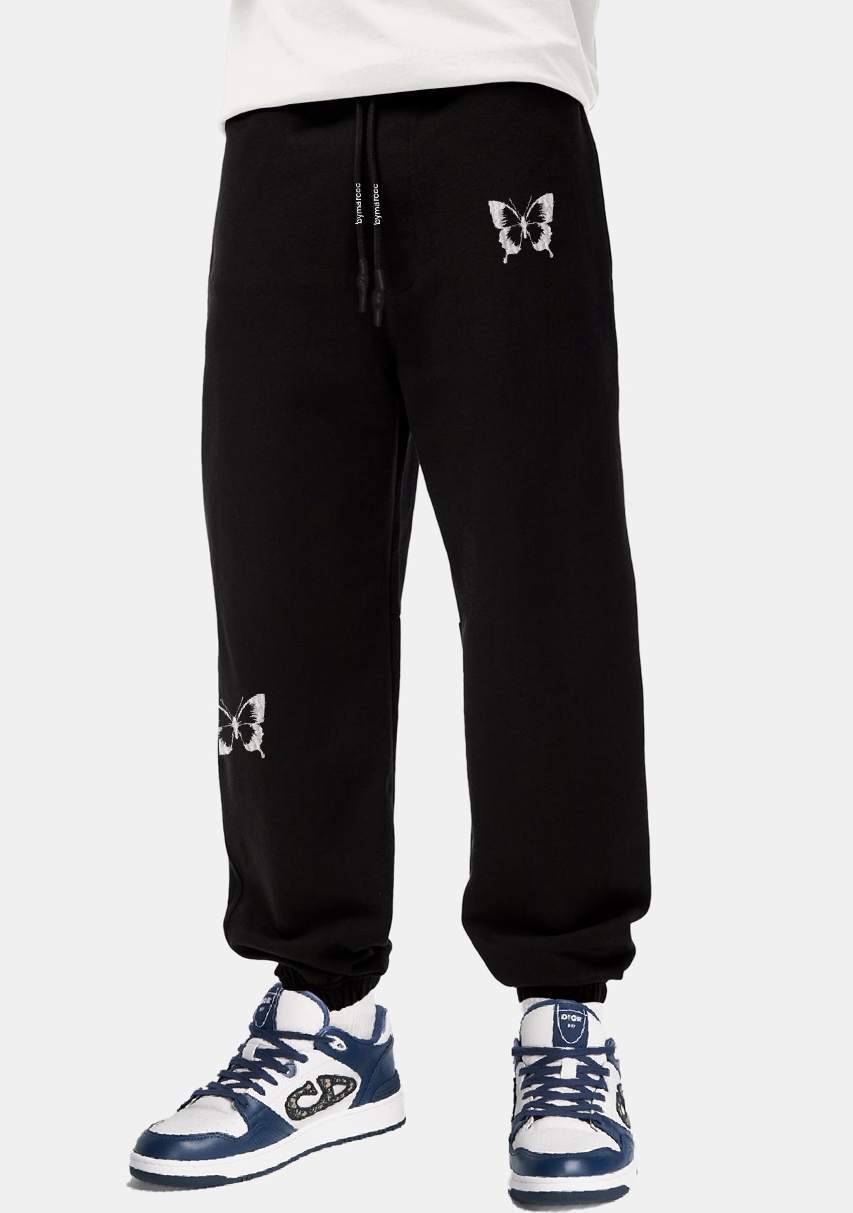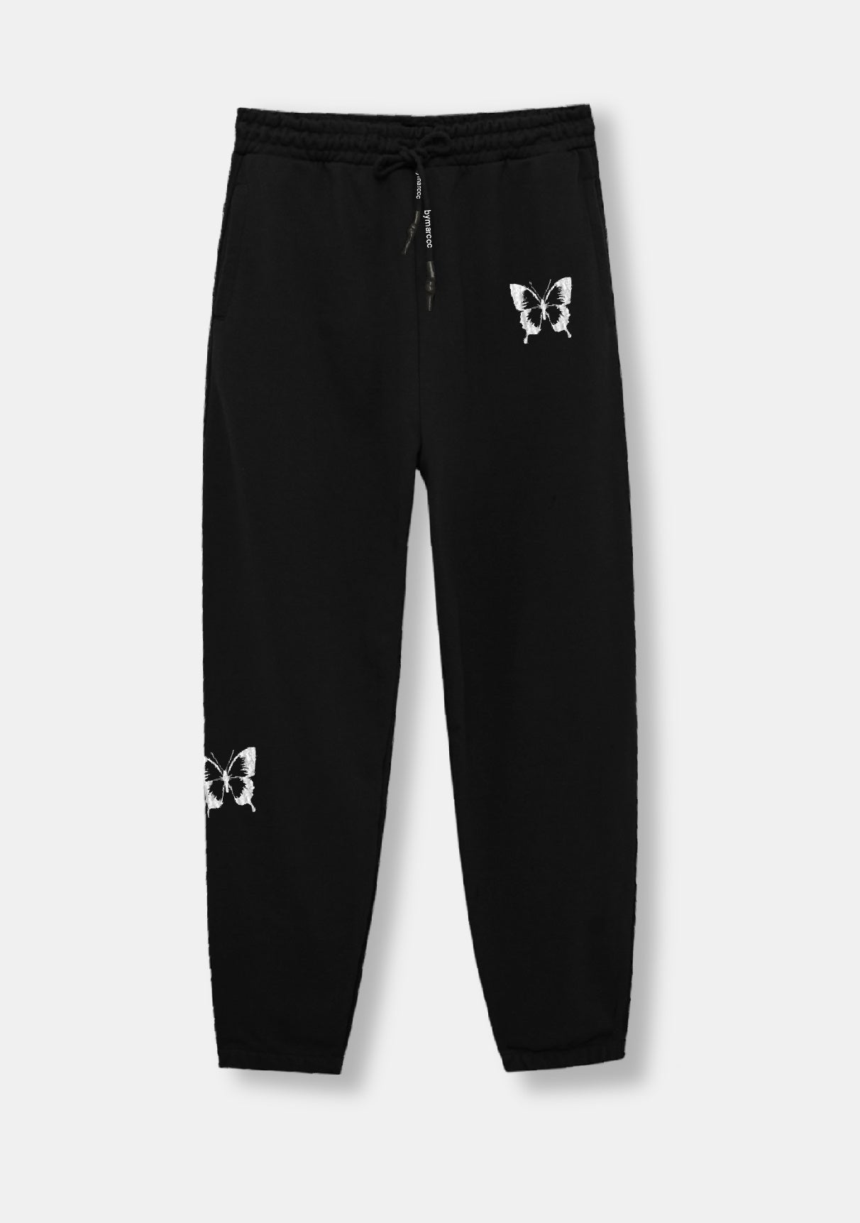 BLACK SWEATPANTS WITH BUTERFFLIES EMBROIDERY.