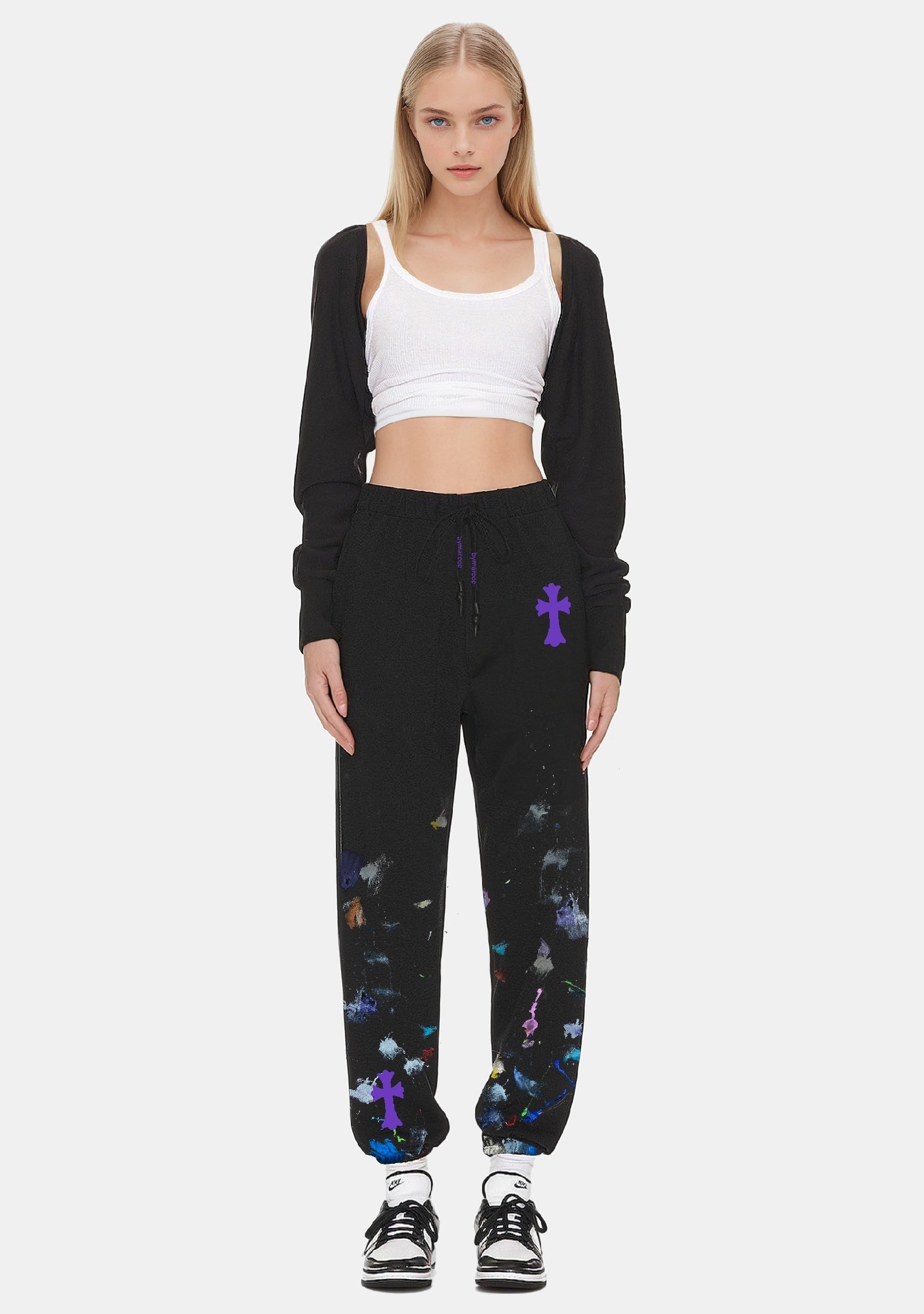 BLACK SWEATPANTS WITH SEEED CROSS AND HAND-PAINTED SPLATTER