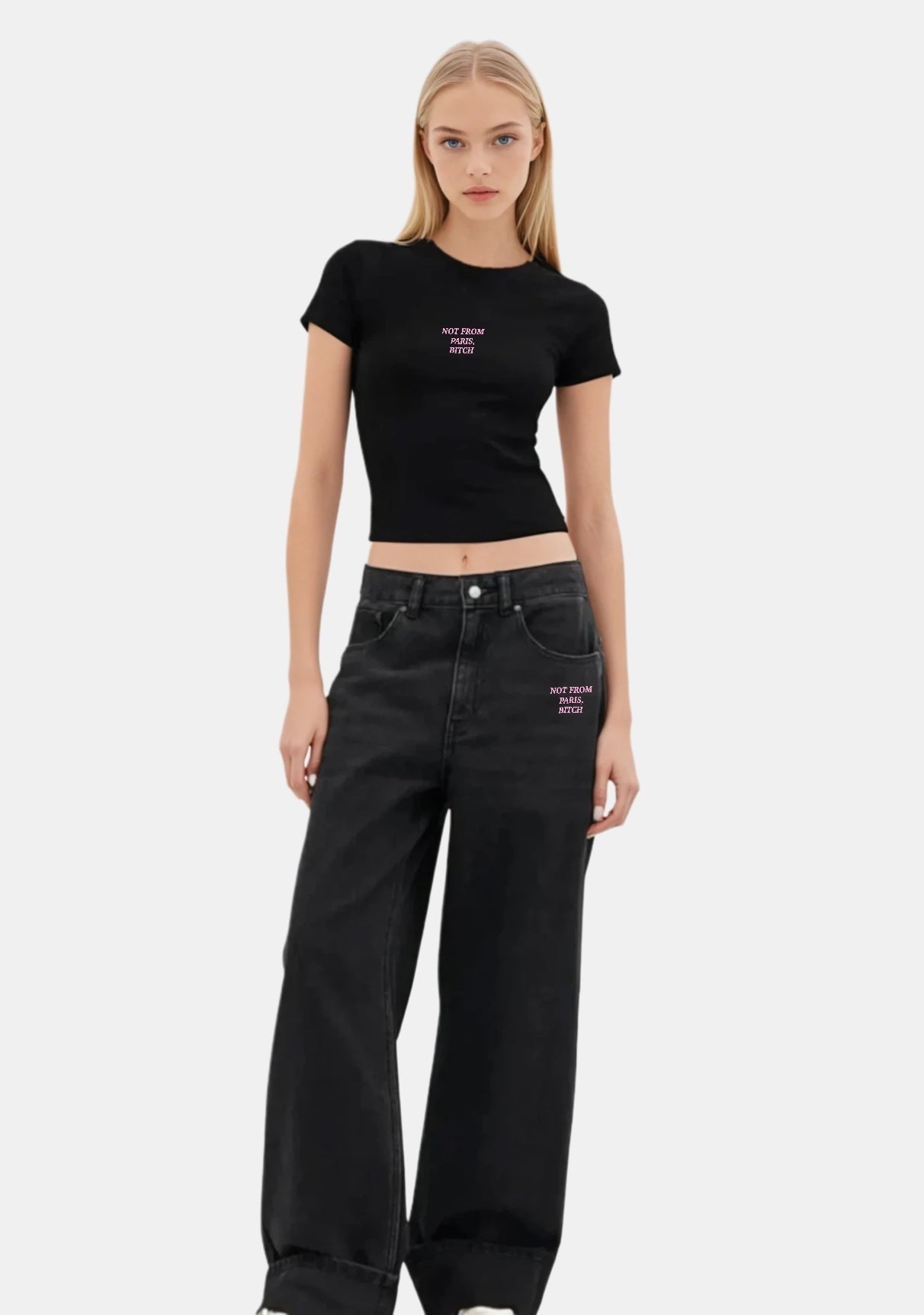 NOT FROM PARIS, B̶I̶T̶C̶H̶ PINK EMBROIDERY.