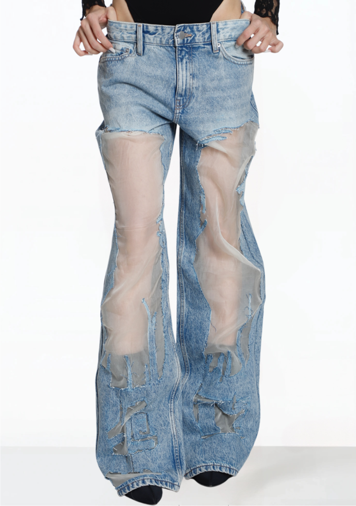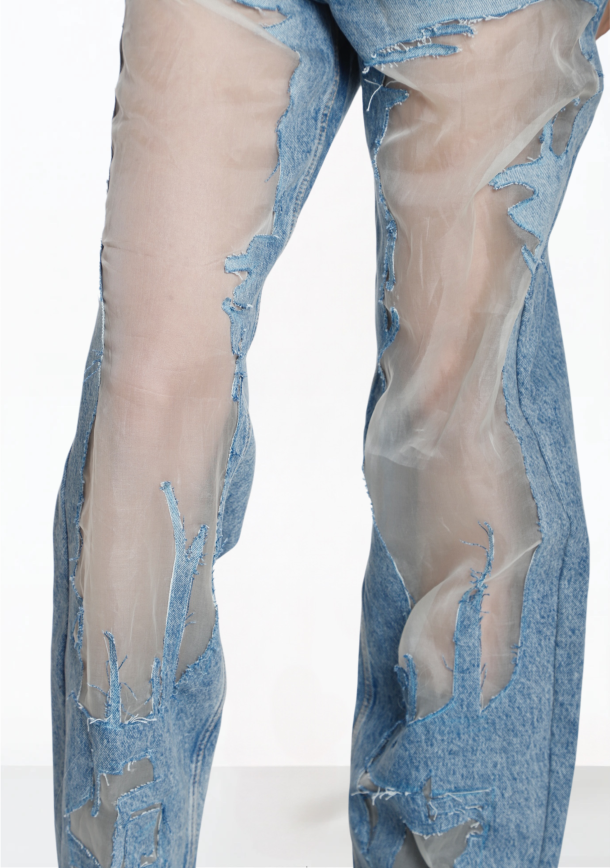 RELAXED FIT JEANS WITH TRASNPARENT MATERIAL.